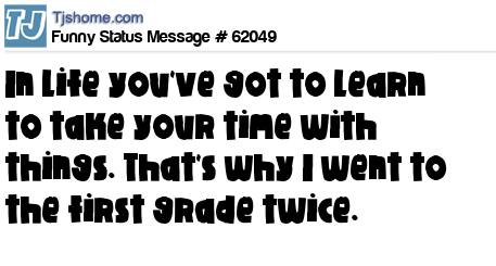X is In life you've got to learn to take your time with things. That's why I went to the first grade twice.