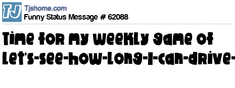 - # 127392 It's time for my weekly game of, "Let's see how long I can drive with my gas light on."