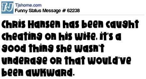 X is Chris Hansen has been caught cheating on his wife, it's a good thing she wasn't underage or that would've been awkward.