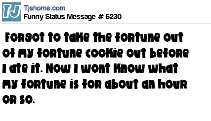 X Forgot to take the fortune out of my fortune cookie out before I ate it. Now I wont know what my fortune is for about an hour or so.