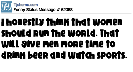 X I honestly think that women should run the world. That will give men more time to drink beer and watch sports.
