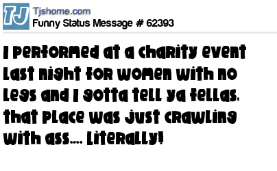 X I performed at a charity event last night for women with no legs and I gotta tell ya fellas, that place was just crawling with ass…. Literally!