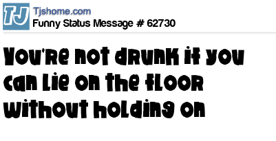 - # 187420 If you can lay on the floor without holding on...... You're not drunk.