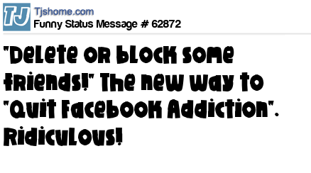 X "Delete or block some friends!" The new way to "Quit Facebook Addiction". Ridiculous!