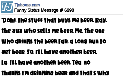X says "Doh!, the stuff that buys me beer, Ray, the guy who sells me beer, Me, the one who drinks the beer.Far, a long run to get beer, So, I'll have another beer, La, I'll have another beer, Tea, no thanks I'm drinking beer and that's why I'm not here! "