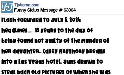 X is Flash forward to July 5, 2024 headlines..... 13 years to the day of being found not guilty of the murder of her daughter...Casey Anythony breaks into a Las Vegas hotel, guns drawn to steal back old pictures of when she was a professional club rat! (See OJ