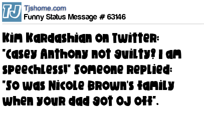X says Kim Kardashian on Twitter: "Casey Anthony not guilty? I am speechless!" Someone replied: "So was Nicole Brown's family when your dad got OJ off".