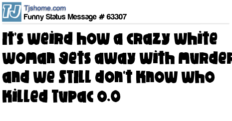 X It's weird how a crazy white woman gets away with murder and we STILL don't know who killed Tupac o.O