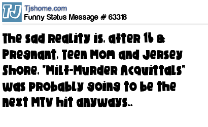 X The sad reality is, after 16 & Pregnant, Teen Mom and Jersey Shore, "Milf-Murder Acquittals" was probably going to be the next MTV hit anyways..