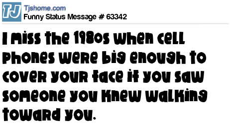 X  I miss the 1980s when cell phones were big enough to cover your face if you saw someone you knew walking toward you.