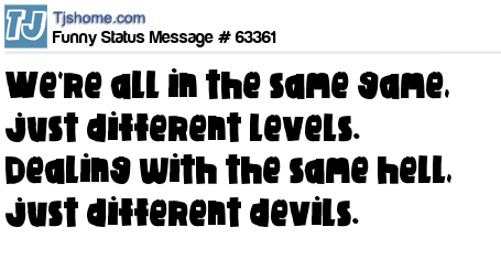 X is We're all in the same game, just different levels. Dealing with the same hell, just different devils.
