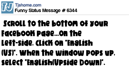 X says Scroll to the bottom of your Facebook page...On the left-side, Click on "English (US)". When the window pops up, select "English(Upside Down)".