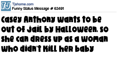 X says Casey Anthony wants to be out of jail by Halloween, so she can dress up as a woman who didn't kill her baby