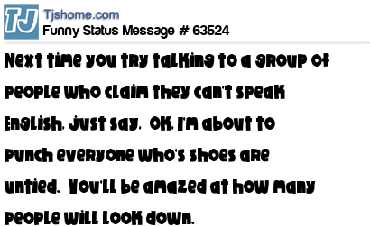 X Next time you try talking to a group of people who claim they can't speak English, just say, “Ok, I'm about to punch everyone who's shoes are untied.” You'll be amazed at how many people will look down.