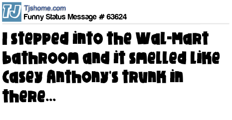 X  I stepped into the Wal-Mart bathroom and it smelled like Casey Anthony's trunk in there...