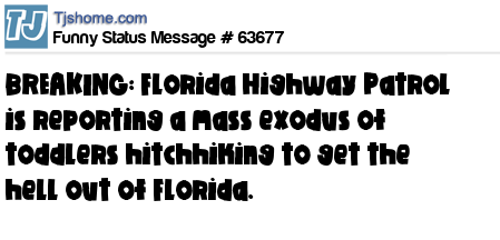 X says BREAKING: Florida Highway Patrol is reporting a mass exodus of toddlers hitchhiking to get the hell out of Florida.