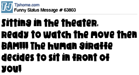 X Sitting in the theater, ready to watch the move then BAM!!! The human giraffe decides to sit in front of you!