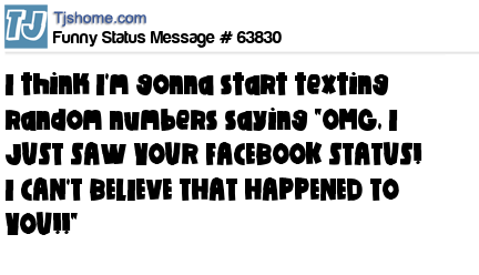 - # 65284 I'm texting random phone numbers with "I just saw your Facebook Status. LOL"!