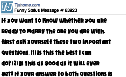 X says If you want to know whether you are ready to marry the one you are with, first ask yourself these two important questions. (1) Is this the best I can do? (2) Is this as good as it will ever get? If your answer to both questions is positive, then go ahead