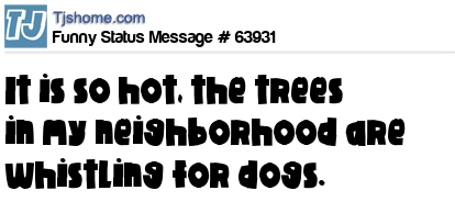 X  It is so hot, the trees in my neighborhood are whistling for dogs.