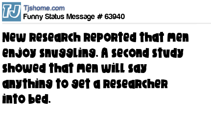 X New research reported that men enjoy snuggling. A second study showed that men will say anything to get a researcher into bed.