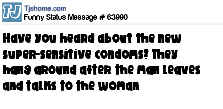 X says Have you heard about the new super-sensitive condoms? They hang around after the man leaves and talks to the woman
