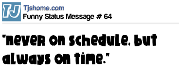 - # 83490 Anyway you can take down the "never on schedule, but always on time." comment