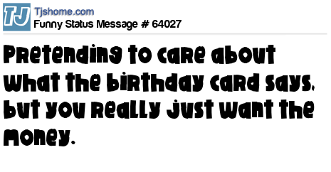 - # 106050 Every time I get a birthday card with money in it, I pretend not to notice the money and “read” the card.