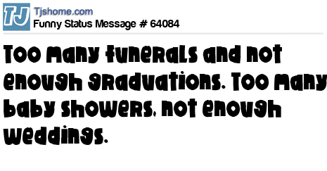 X says Too many funerals and not enough graduations. Too many baby showers, not enough weddings.