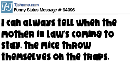 X says I can always tell when the mother in law's coming to stay, the mice throw themselves on the traps.