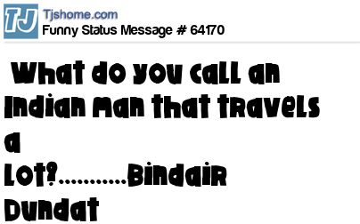 X What do you call an Indian man that travels a lot?...........Bindair Dundat