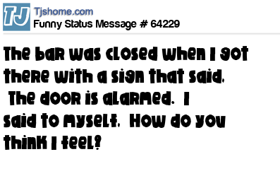 X is The bar was closed when I got there with a sign that said, “The door is alarmed.” I said to myself, “How do you think I feel?”