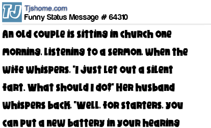 - # 27939 A man sitting in church writes a note to his wife: "I just let out a silent fart. What should I do?"...She writes back, "Put a new battery in your hearing aid."
