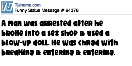 X A man was arrested after he broke into a sex shop & used a blow-up doll. He was chrgd with breaking & entering & entering.
