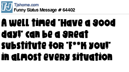 X says A well timed "Have a good day!" can be a great substitute for "F**k you!" in almost every situation