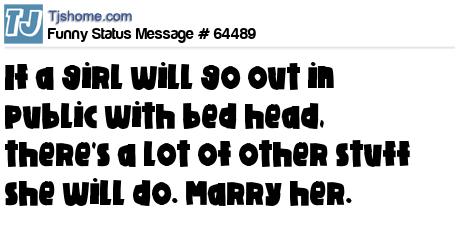 X If a girl will go out in public with bed head, there's a lot of other stuff she will do. Marry her.