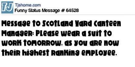 X Message to Scotland Yard Canteen Manager: Please wear a suit to work tomorrow, as you are now their highest ranking employee.