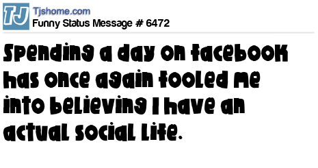 - # 70715 so everyone's so captivated in changing and updating their online status nowadays.. how about trying to update your "Actual" social status where friends can like you in real life for you, than for your imaginary egotistic thoughts about your life.