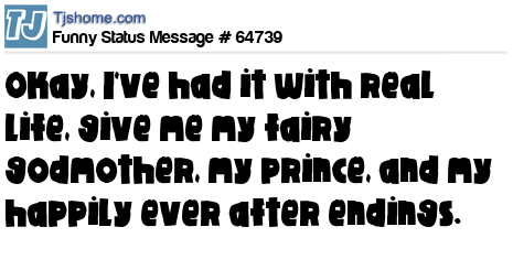 X says Okay, I've had it with real life, give me my fairy godmother, my prince, and my happily ever after endings.