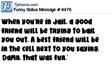 - # 61074 A good friend would bail you out of jail, but your best friend would be the one sitting next to you saying, "damn that was awesome".