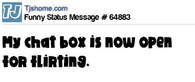 - # 105346 How about instead of flirting and carrying on a conversation under my status that has nothing to do with it's original topic, you try using the chat window, the poke button, or maybe even do it the old fashioned way! Call the B!tch!!!