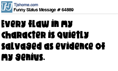X is Every flaw in my character is quietly salvaged as evidence of my genius.