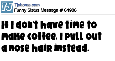 X If I don't have time to make coffee, I pull out a nose hair instead.