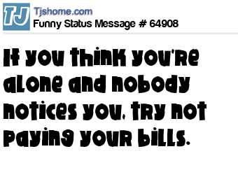 X is If you think you're alone and nobody notices you, try not paying your bills.