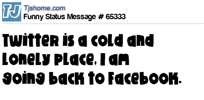 - # 80554 Dear New User; Facebook is a revolutionary platform. Don't bring your Twitter tendencies here. Here you are either funny and witty or you go back to Twitter.