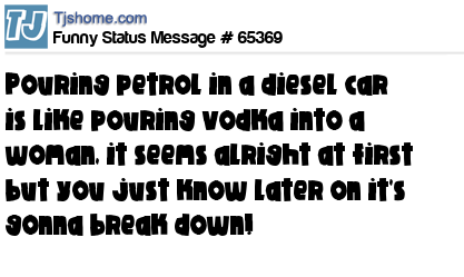X Pouring petrol in a diesel car is like pouring vodka into a woman, it seems alright at first but you just know later on it's gonna break down!