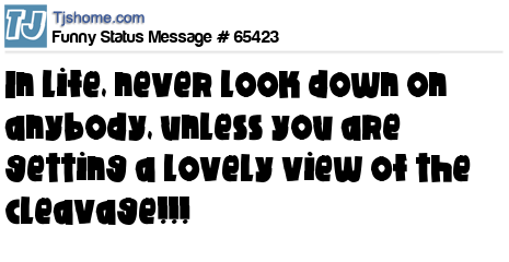X  In life, never look down on anybody, unless you are getting a lovely view of the cleavage!!!