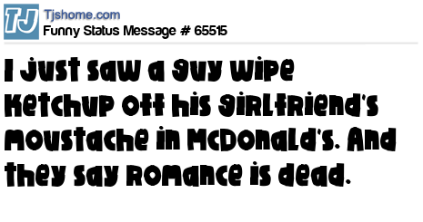 - # 203251 just saw a guy wipe ketchup off his girlfriend's moustache in McDonald's. And they say romance is dead.