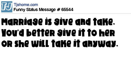 X  Marriage is give and take. You'd better give it to her or she will take it anyway.