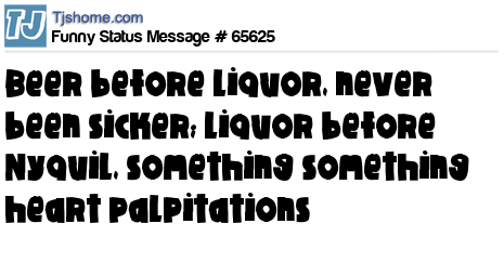 - # 85462 Beer before liquor, never sicker. Toothpaste before orange juice, dead.